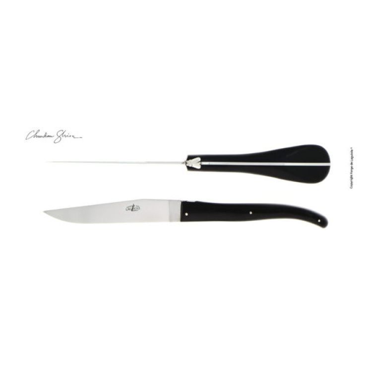 Ce couteau de table Forge de Laguiole ® dessiné par le designer Christian Ghion, est composé d'un manche en fibre végétale composite noire et d'une finition brillante.