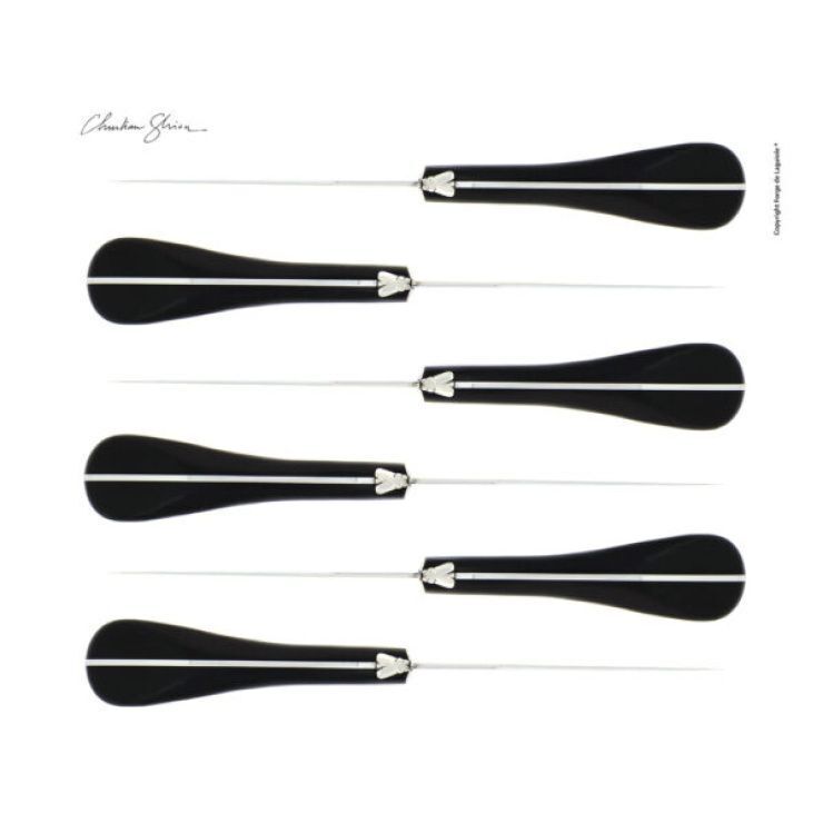 Ce couteau de table Forge de Laguiole ® dessiné par le designer Christian Ghion, est composé d'un manche en fibre végétale composite noire et d'une finition brillante.