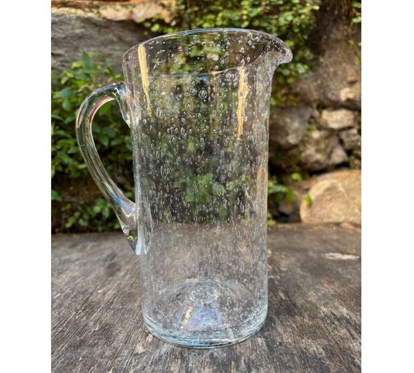 Broc en verre bullé sobre et élégant pour servir l'eau, une orangeade ...